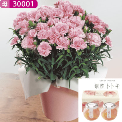 【ネット決済】【10%OFF】【母の日】カーネーション「感謝の気持ち」ピンク+銀座トトキ監修「山形県産白桃のゼリー」セット