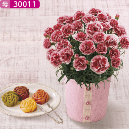 【ネット決済】【10%OFF】【母の日】カーネーション「いちごホイップ」+パティスリー モンシェール「エタニティーローズ」セット