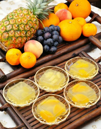 | 原材料 | 温州みかん、パイナップル、 もも、砂糖、りんご果汁、 天草、寒天、こんにゃく粉、 酸味料、ビタミンC |