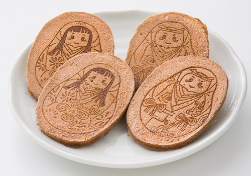 松山の姫だるまをモチーフにしたお煎餅です。煎餅は昔ながらの手焼きです。