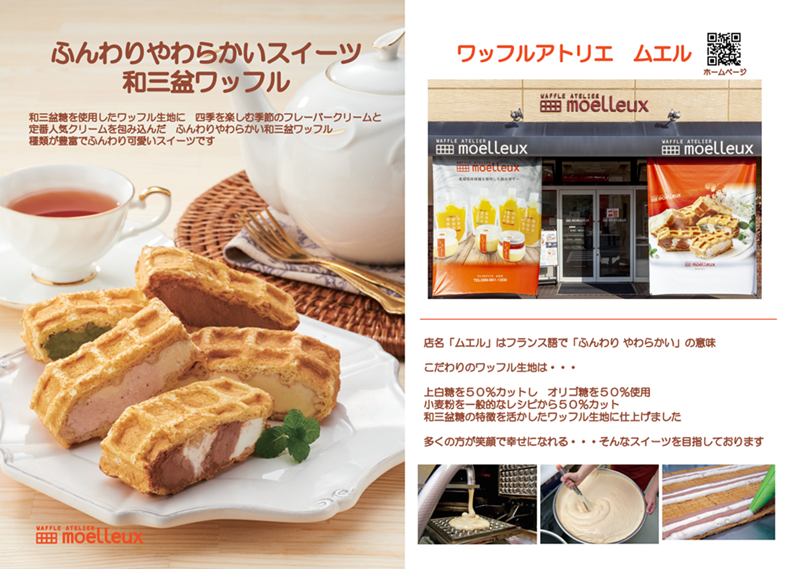 和三盆を活かした「ふんわり やわらかいワッフル生地に季節のフレーバーを包み込み心を込めて手作りしております。