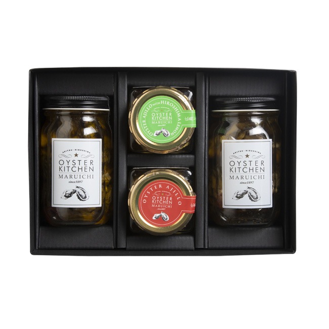 | 内容量 | ・牡蠣のオリーブオイル漬け瓶:200g×1本 ・牡蠣のバジルオイル漬け瓶:200g×1本 ・牡蠣のアヒージョ 小瓶:120g×1 本 ・牡蠣と広島レモンのアヒージョ 小瓶:120g×1本 |