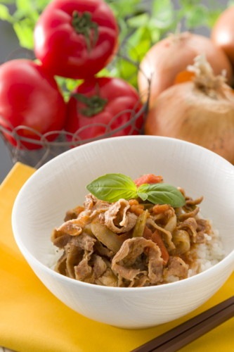 厳選した国産牛と甘みが際立つたまねぎ、太陽の光をたっぷりあびたトマトを炒め、ワインでじっくり煮込み、スパイスをいれ更に煮立たせてからねかせて熟成。ご飯の上にかければトマトの酸味がきいた大人のイタリアン牛丼が完成。お好みでチーズをのせて食べれば更に美味しく召し上がれます。