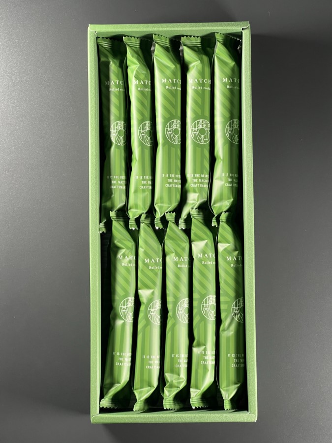 | 原材料 | 抹茶チョコレート(国内製造)、砂糖、卵白、小麦粉、乳等を主要原料とする食品、抹茶、ショートニング、植物油脂、乾燥卵黄、食塩/乳化剤、香料、カロテン色素、(一部に大豆・卵・小麦・乳成分を含む) | ||||
