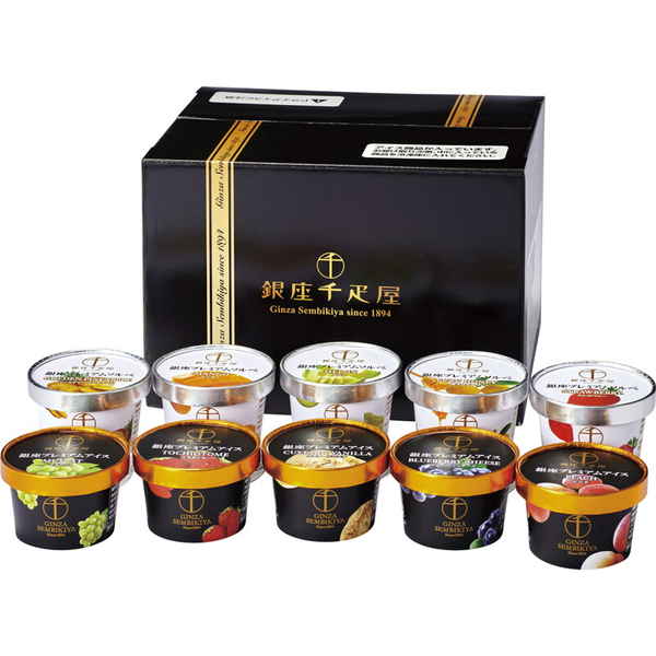 フルーツの老舗、銀座千疋屋が「厳選した素材」を使用して作った濃厚なめらかなプレミアムアイスクリームと、ジューシーでフレッシュ感のあるプレミアムソルベの詰め合わせです。