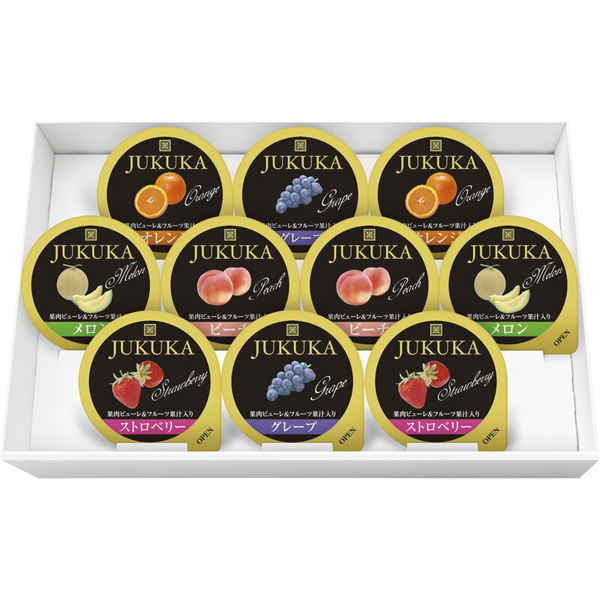 季節を彩る5種類のフルーツを使った熟果ゼリーの詰め合わせです。ご家族みんなでお楽しみ頂けるデザートギフトです。