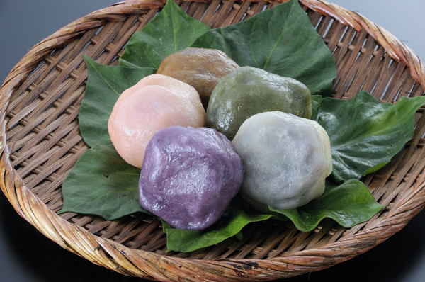 定番で一番人気のプレーンの他に、色鮮やかな紫芋、風味豊かなよもぎ、黒糖蜜の甘い香りが特徴の黒糖、塩漬けした桜葉を餡へ練り込んださくらの5種類をセットでお届けします。