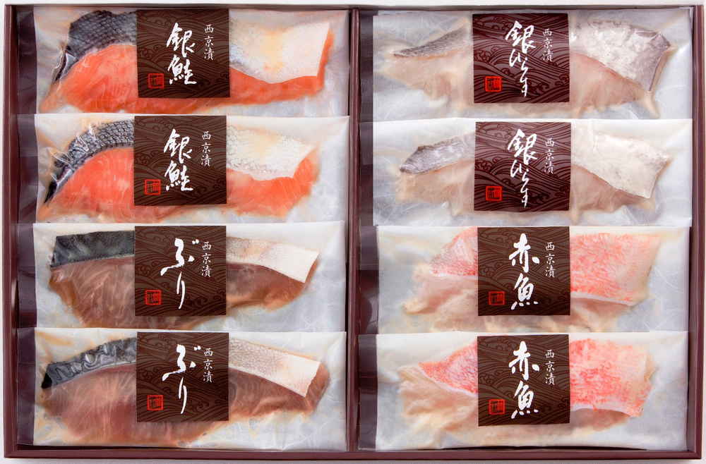 ぶり、銀鮭、赤魚、銀ひらす西京漬 各(約70g)×2切 |