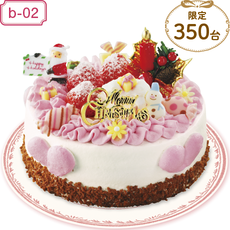 5色のスポンジ生地に生クリームをサンドし、苺クリームと、プレゼントに見立てた苺のムースボックスで飾り付けたとってもキュートなクリスマスケーキです。サイドにもキュートなハートがいっぱいです。