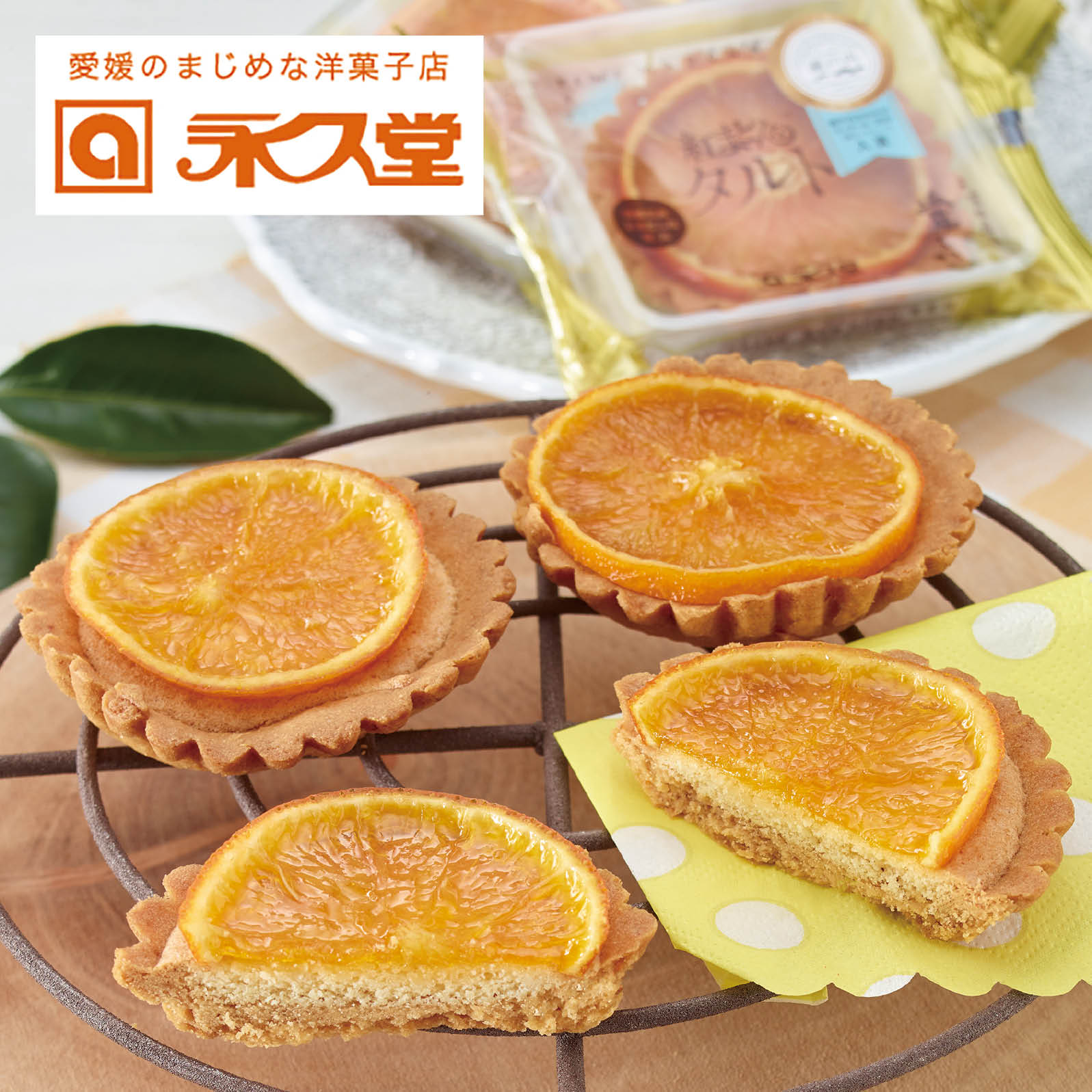 タルト生地に、甘く煮詰めた輪切りの「紅まどんな」を乗せた焼き菓子です。