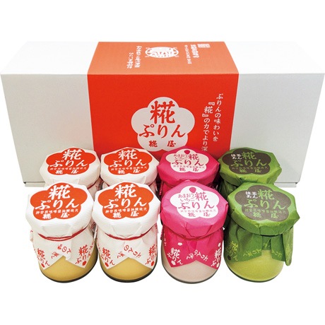 糀ぷりん80g×4、抹茶あん糀ぷりん80g×2、あまおう苺糀ぷりん80g×2