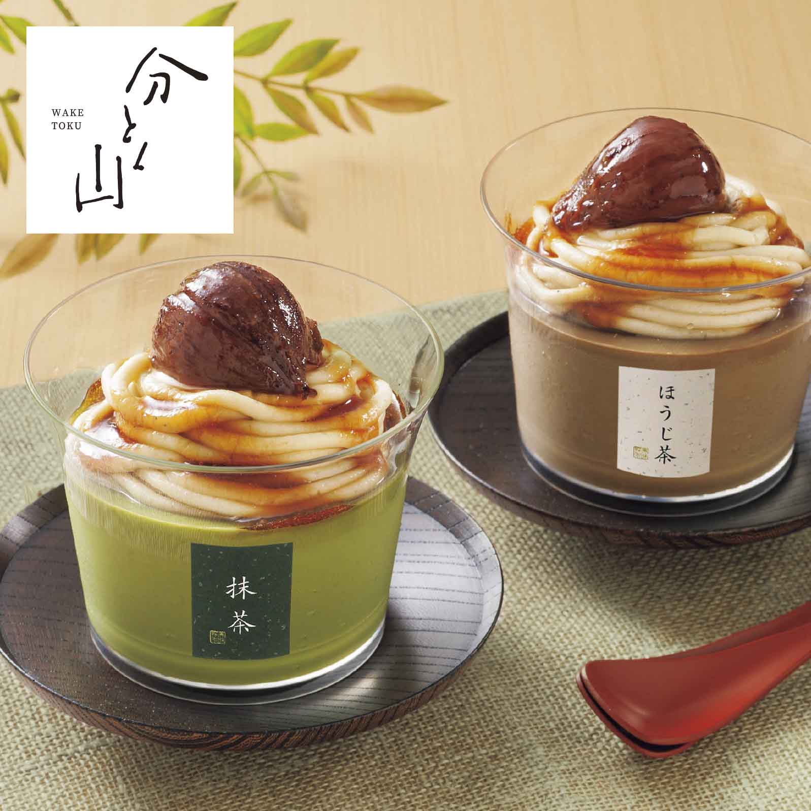 ほろ苦い香り豊かな抹茶プリンと、まろやかで香ばしさが香るほうじ茶プリンのセットです。
