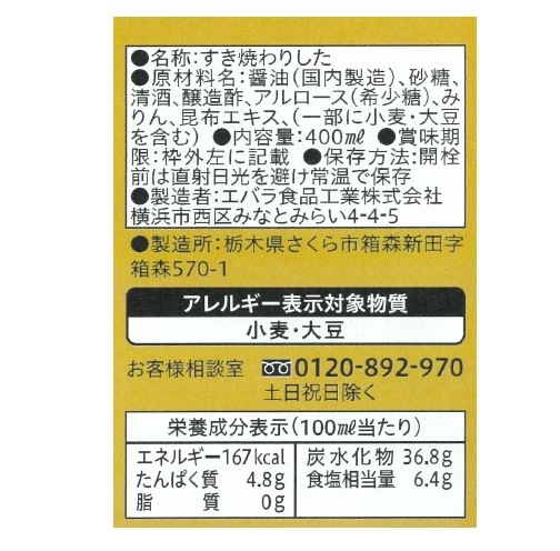 エバラ おもてなしすき焼のたれ 400ml まとめ買い(×12)|4901108013311(tc)(012956)