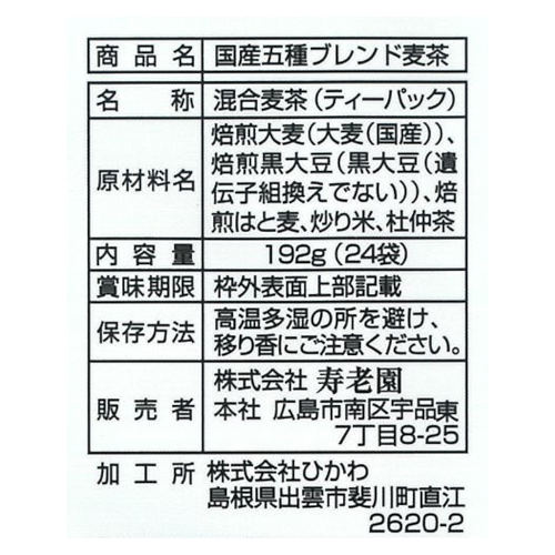寿老園 国産五種ブレンド麦茶 8g×24p まとめ買い(×3)|4901607293405(tc)(015626)