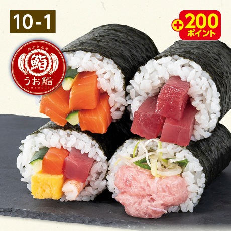 サーモン巻き、まぐろ巻き、海鮮巻き、ねぎとろ巻き