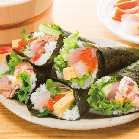 サーモンをたっぷりと使用した手巻き寿司用の盛り合せです。